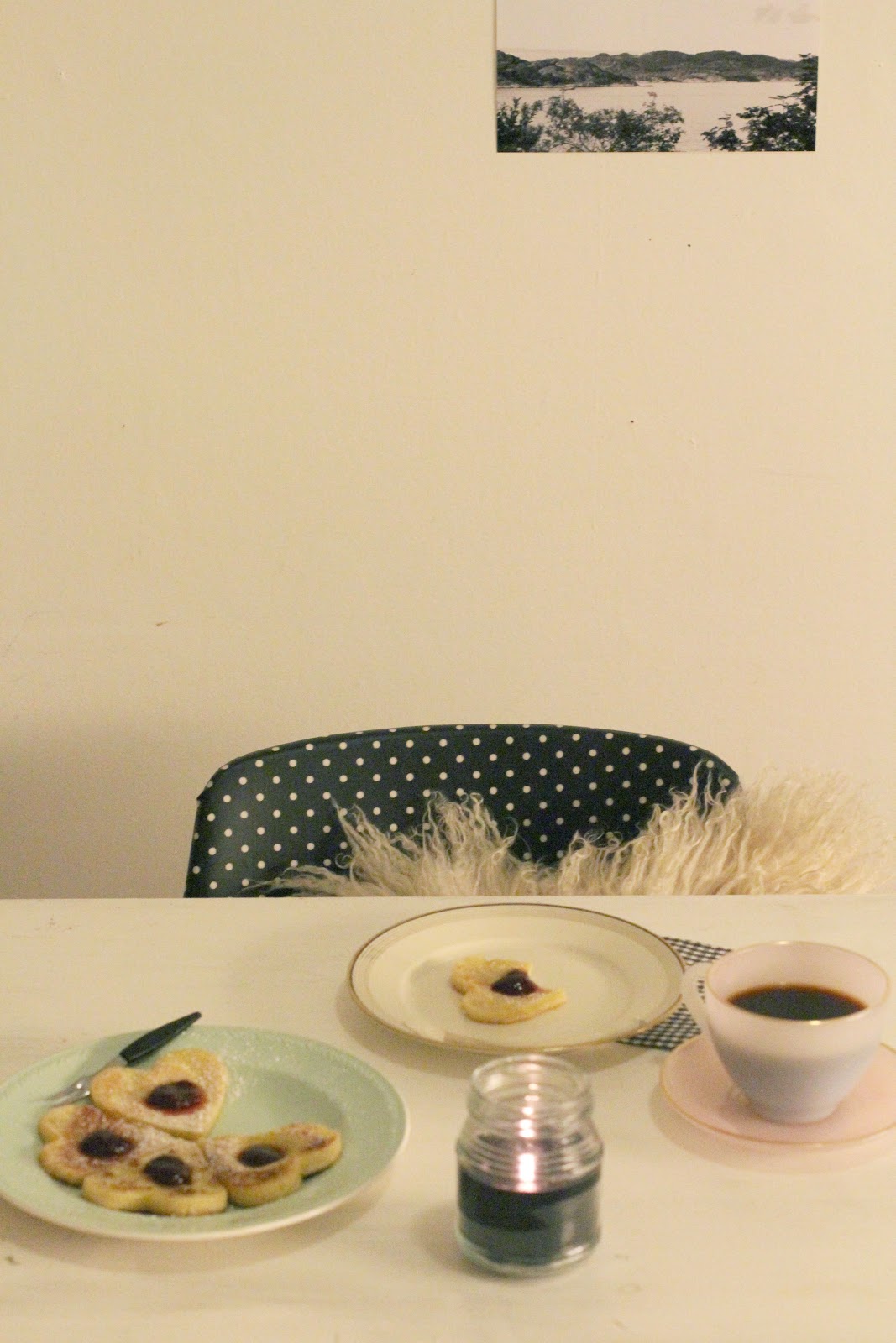 ..i kveld koser vi oss her i lidyll-hjemmet med hjertepannekaker til kvelds.